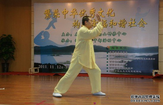 西安市老干部活动中心舞蹈队以开场舞《送你一个长安》拉开了西安首届终南太极文化研讨会大型太极拳术及文艺表演的序幕。陕西著名歌唱家买致远以一首气势磅礴地《陕北娃》引得现场掌声不绝于耳,随后张爱军先生隆重登场为现场观众表演太极养生太极拳。
