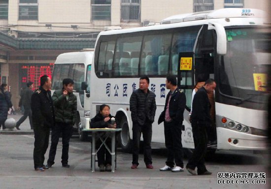 记者发现整个火车站广场有很多类似中年妇女的“揽客人”,将有游览意向的乘客带向八角楼旁边停着的大巴车前,大巴车前还设有一张桌子,桌前坐着“司乘人员”负责给乘客“售票”。