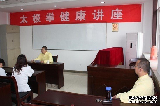 西部新闻网消息:(记者 刘波)为了更好地普及学习太极养生知识,进一步落实开展老干部工作,进而运用太极养生方法为老干部们的身心健康服务,促进社会和谐健康发展,2011年11月25日上午,应西安市老干部活动中心副主任关思荣先生之邀,陕西省联合国教科文组织协会文化艺术委员会副秘书长,太极文化终南山研修中心主任,武当赵堡太极拳第十二代传承人张爱军先生于西安市老干部活动中心为西安市老干部活动中心全体员工及广大爱好太极养生文化的朋友们开展太极拳健康讲座。西安市市委老干部局巡视员何平,西安市老干部活动中心主任曹奕,西安市老干部活动中心副主任关思荣,西安市老干部活动中心活动科科长李琳侠,西安市老干部活动中心经营科科长杨红伟,太极文化终南山研修中心副主任,武当赵堡太极拳第十二代传承人张爱国等相关领导和嘉宾出席了本次太极拳健康讲座。