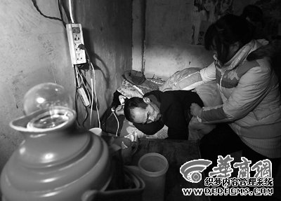 村民们说,1996年11月15日早上,33岁的李建朝在栎阳镇街道上捡垃圾时,突然听到一阵婴儿啼哭声。原来是一个女婴裹在褥子中,被人遗弃在街头。李建朝把孩子抱回家,起名叫倩倩。1997年到1998年,李建朝母亲和妻子相继去世,家里就剩下父女俩。俩人继续依靠捡破烂为生。今年11月16日,在捡破烂途中,李建朝倒下了。在乡亲们的帮助下,他被送到临潼区核工业四一七医院,诊断结果为食道癌晚期。因没钱治病,李建朝回到家里休养。15岁的李倩说,从她记事起,最早的印象就是骑在爸爸脖子上或者爬在爸爸背上,跟随他捡破烂。“等我长大点,爸爸就拉着我的手,一起出去捡破烂。爸爸的手很大,每次都拽得我生疼,但是很温暖。”李倩一边给爸爸按摩,一边流着泪说:“爸爸的背影能给我力量,我因为有个捡垃圾的爸爸而骄傲。”