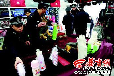 管理部门及警方查封箱包店 华商报记者 赵雄韬 摄