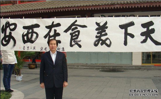 陕西天下第一面餐饮有限公司董事长严子农的书法作品也入选参展并被授予了收藏证书,他所书写的“天下美食在西安”在中央电视台进行了特别展示,广受好评。