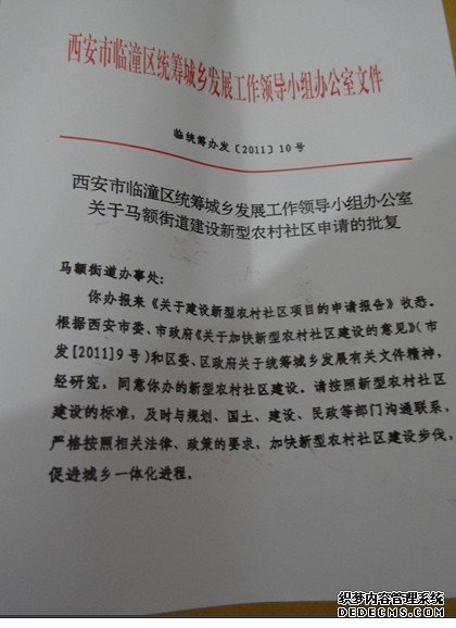 随后,记者来到临潼区马额街办核实情况。马额街办陈副书记向记者介绍了该项目的情况,这项目的土地原来就是集体建设用地,街办结合市上《关于加快新型农村社区建设的意见》的文件精神实施这个项目。这个项目的初衷是,在马额街办辖区北边有个沟,沟中还有几个小组住在滑波地带,由于下雨下雪经常滑波,居住环境很不安全,再加上街办还有部分群众居住在山区零散户,为了解决群众住房,街办考虑把他们都集中到安全地方安置,彻底解决农民住房问题。房源有政府出台统一分配方案,目前不能进行销售,首先要解决搬迁户的住房问题,然后剩余的房源再处理掉。