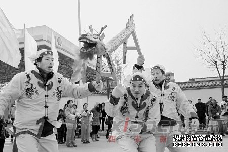 昨日下午,北郊上庄村的汉子们舞动着传统的“板凳龙”就让人们大开眼界。“这种‘板凳龙’在我市非物质文化遗产调查中还是首次发现,实在是难得一见啊。”西安市非物质文化遗产保护中心副主任王智惊叹道。