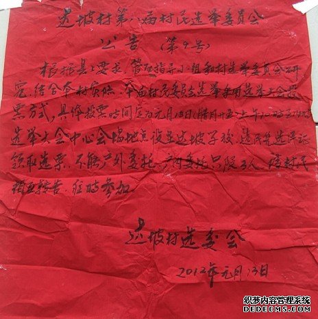 “看似一张很冠冕堂皇的公告,其实背后有不可告人的内幕。”村民达先生告诉记者,因为村民选举委员会就不知情,根本没有同意上述的公告内容,告示是乡里管区相关领导私自张贴的。公告见下图: