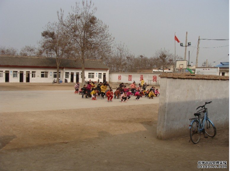 孩子们在旧教室外面上体育课
