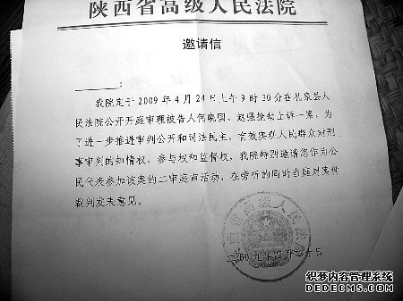 “为了进一步推进审判公开和司法民主,有效实现人民群众对刑事审判的知情权、参与权和监督权,我院特别邀请您作为公民代表参加该案的二审庭审活动,在旁听的同时当庭对案件裁判发表意见。”4月20日发出的《邀请信》写道。