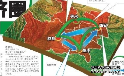“西三角经济圈”的全称是“西部川陕渝金三角”,包括重庆经济圈、成都经济圈、以西安为中心的关中城市群,总面积22万平方公里,人口1.18亿,包含47座城市。