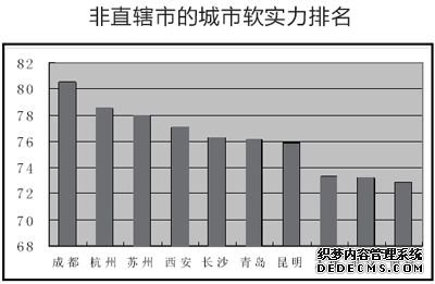 除直辖市以外的城市,软实力总排名前十位依次是:成都、杭州、苏州、西安、长沙、青岛、昆明、大连、武汉、南京。西安在其中排第四位。