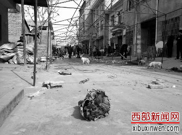 昨日下午3时许,记者赶到事发现场。窄窄的3米村道,挤满了围观者。远远望去,婚礼中新郎送给新娘代表一心一意的11朵玫瑰花散落街头。鲜花后面则是一片狼藉,地面上满是红色的彩纸和酒席散去的痕迹,村道上架起的铁架子还没来得及拆除。