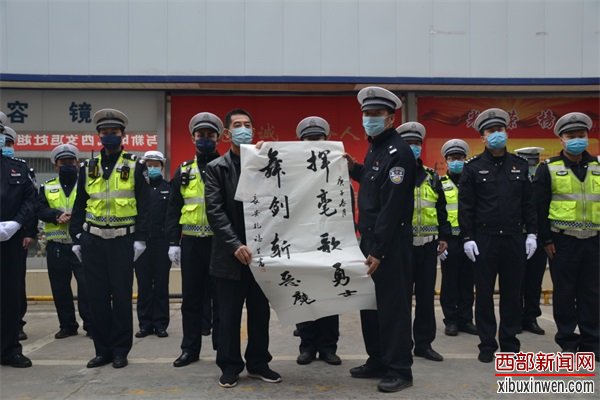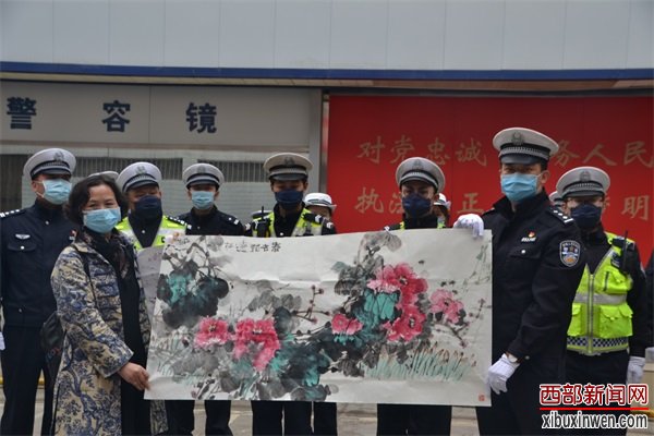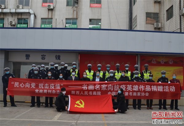 3月31日中午,由党政周刊杂志社、陕西人民书画院、中国实力派书画家协会、西北大学陕西文化产业研究院国画院11名代表组成捐赠慰问团前往西安市莲湖区交警大队北关中队,向在抗击疫情一线的48名交警和辅警英雄们进行名家书画作品捐赠及慰问。