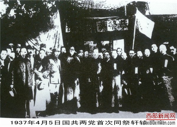 1937年4月5日清晨7时,国共两党在黄陵前举行民族扫墓典礼,祭祀黄帝。国民党方面有中央代表张继,国民政府代表孙蔚如主祭,刘震东、于学忠等参加陪祭,共约千余人。中共方面派出了林伯渠作为代表参加祭祀,虽然当时国内一些主流报纸如《申报》、《大公报》并未对中共参加祭祀进行报道,只有《益世报》提了一句:“陕甘边区新编军队,亦派代表4人参加,以示尊崇整个民族祖宗之意。”但当时中共的机关报《新中华报》对林伯渠参加公祭有详细报道:“中华苏维埃共和国中央政府特派代表致祭黄帝坟墓,举行民族扫墓典礼,苏维埃政府代表苏区内全体公民为对中华民族之始祖致敬,并表示誓死为抗日救亡之前驱,努力实现民族团结计,特于五日派遣代表前往参加。该代表在民族扫墓典礼上恭读了祭文,以寥寥数句描述黄帝功绩,大量篇幅表达现实诉求,指责日本侵略和汉奸横行,痛恨国家的沧落,望各党各界组成民族统一阵线以救国家于危难,实现‘还我河山,卫我国权’之宏愿。”(《新中华报》,1937年4月6日《苏维埃代表参加民族扫墓典礼》)