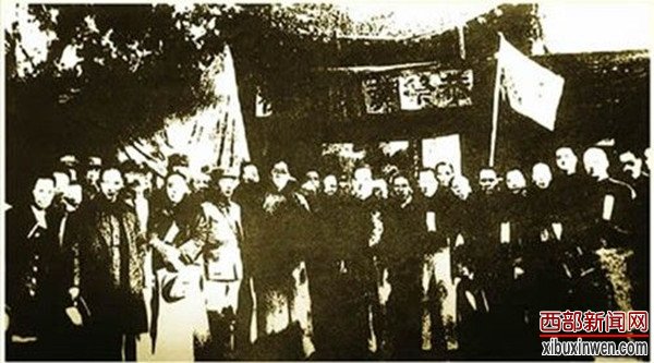 1937年清明节,国共两党共祭黄帝陵,图为两党代表在黄帝陵前合影