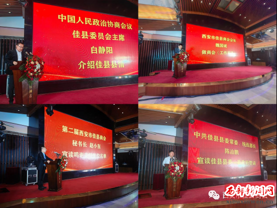 佳县人大会常委会副主任张志鹏等出席换届大会。特邀嘉宾代表原陕西省文化和旅游厅原一级巡视员陈梦榆代表佳县籍退休老干部在会上讲话,西安市榆林商会党支部书记刘国义在会上讲话并宣读贺词。会议还举行了第二届西安市佳县商会班子成员授牌和集体亮相,被授牌人员有康守斐、张育英、魏国斌、郭明耀、张庆平、王高平、魏耀卫、赵小东、任玉荣、张雄、高峰、刘海潮、魏国军、张伟、刘望、崔继承、冯保生、郑明贵、殷桂平、任艳武、王治宇、张随军、任学卫、张井、刘宣安、马小娟、王照、杜玉祥、马顺峰、贺建峰、高保国、张卫军、崔亮、高小江、方园平、任永军、郭强、张满楼、崔海波、乔煜恒、高美美。