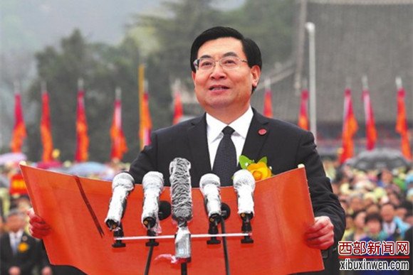 西部新闻网讯(记者杨阳)惟公元二零一六年四月四日,岁次丙申,节届清明,炎黄子孙,聚首桥山之阳,谨以鲜花雅乐之奠,恭祭于我人文初祖轩辕黄帝之陵,其辞曰: