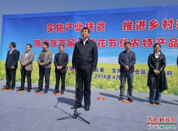 (李乃斌 通讯员董建新)宝鸡市陈仓区首届油菜花节暨农特产品推介会,于2018年4月8日,在贾村镇东昇种植专业合作社千亩油菜园(贾村镇东坡村)开幕。