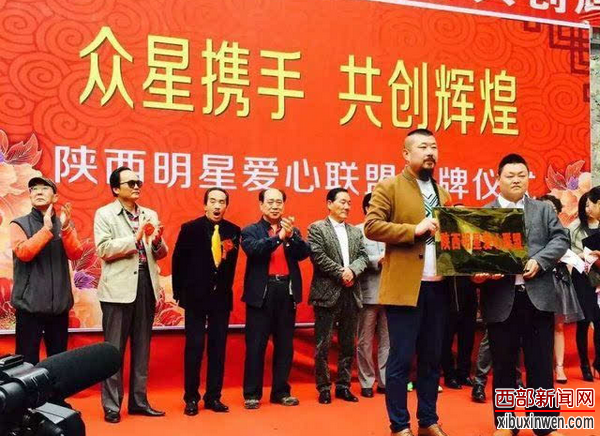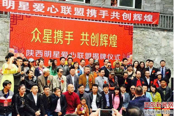4月9日上午,陕西明星爱心联盟揭牌仪式在西安长安区沣峪口平安谷举行,明星联盟发起人、演员张一凡,周恩来总理的扮演者演员宋建华,西安中国书法院院长石心剑 ,中国梦想秀公益大使陈汉,中国首位情歌励志人海鑫,大唐皇帝扮演者刘帅、特型演员喀秋莎,国家一级演员苏国涛,表演艺术家石国庆、中国大力士冠军龙武,星光大道人气王任静,陕西著名主持人雷子,华语男歌手谢震东,演员刘凡,歌手王耀阳、马氏集团总裁马胜利、陕北歌手刘建东、陕西青年歌手王婉伊、舞蹈演员张瑞、演员曹西安、气质女王魏菲儿、表演秀达人秀艺术家任世和、西安星工场戴国富等40余名嘉宾以及社会各界爱心团体300余人出席了揭牌仪式。