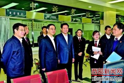 4月11日上午,最高人民法院党组书记、院长周强在省委书记赵正永等陪同下,