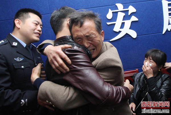 爸爸见到19年前丢失的儿子激动的流下泪水。