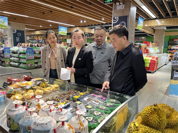4月21日,华阴市人大主任张锋在市场监管局局长郑华鹏陪同下,督导检查惠欧购物广场有限公司食品安全工作,推动包保主体食品安全“两个责任”落地见效,确保第二季度食品安全各项工作有序开展。