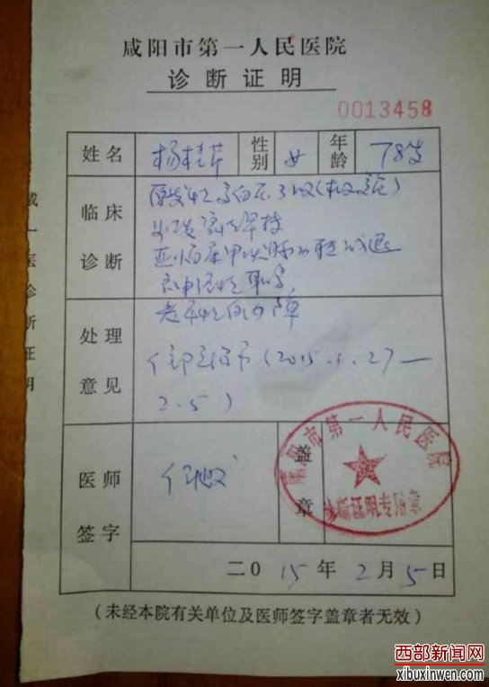 最后梁女士向记者出具了医院的诊断证明,以此洗刷老太太的清白还原事态的真相!同时代表婆婆向那天发生在世纪大道造成交通不便的广大司机表示歉意,同时感谢那位紧急关头急刹车挽救婆婆生命安全的21路公交司机。