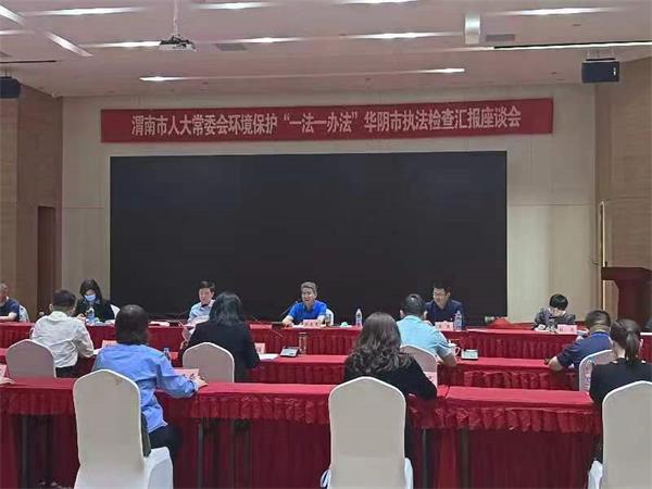 4月27日,渭南市人大常委会副主任韦红革率第四执法检查组赴华阴就贯彻实施《中华人民共和国环境保护法》《陕西省实施<中华人民共和国环境保护法>办法》开展执法检查。检查组先后深入建筑工地、华岳垃圾填埋场、华阴市污水处理厂、仙峪村污水处理站等点位,实地检查环境保护“一法一办法”落实情况。其次,通过召开座谈会,听取市人大、市政府及相关部门贯彻实施“一法一办法”工作情况汇报,并就相关工作落实情况向有关部门进行问询。