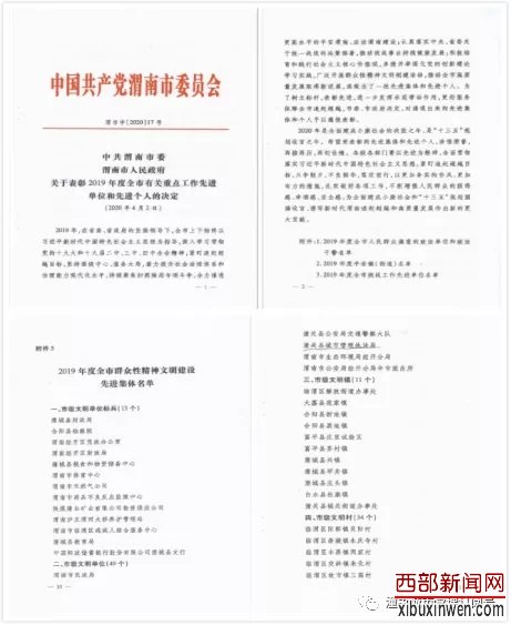 近日,中共渭南市委、市人民政府印发《关于表彰2019年度全市重点工作先进单位和先进个人的决定》,潼关县城市管理执法局荣获“市级文明单位”荣誉称号。