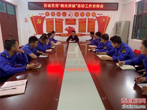 5月6日晚七点,潼关县城管局组织全体中层以上干部召开“晒比拼超”工作安排部署会议。
