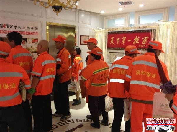 ![]() 在西安才被评选为全国文明城市称号后,全市人民都为之而欢欣鼓舞,背后也有太多的辛劳付出,尤其是工作在一线的环卫工人们,更是顶着风雨、迎着酷暑、冒着严寒,默默无闻的在用汗水浇灌着这个美丽的城市。西安创文成功的路上,也正因为有了这些辛勤付出的环卫工人们,才有了这个干净而美丽城市。 ![]() ![]() 一大早,就陆续有环卫工人来到店里,只见服务人员把卫生打扫的干净整洁,侧面靠窗户的地方挂着一条横幅:“劳动最光荣 环卫工人你们辛苦了!”这使前来就餐的环卫工人心里倍感温馨,就像回家一样的感受。近中午十二点时候,前来就餐的环卫工人已至百人,餐厅服务人员热情的为每位环卫工人端上准备好的特色张家山空心手工挂面、一杯酸梅汤、一个肉夹馍,像过节一样,整场洋溢着温情的气息。 据了解,这家开在西安雁塔区小寨西路的“上丰元·中华面馆”,主要经营来自吴堡县的张家山空心手工挂面,目前也是西安的首家店。张家山空心手工挂面可谓亮点颇多,去年曾在央视《舌尖上的中国2》热播后,在全国引起巨大反响,同时也是柳青故里,也使得著名书画家刘文西在品尝后特别而题字“天下第一挂面”! ![]() ![]() 据餐厅经理介绍,餐厅一直把文化与民生放在首位,在饮食中了解中国传统文化、弘扬美德,做放心餐饮、做良心企业。这次宴请百名环卫工免费吃面,也在用实际行动,来感谢工作在一线的辛勤环卫工人们,道一声:“你们辛苦了!”(焦点) |