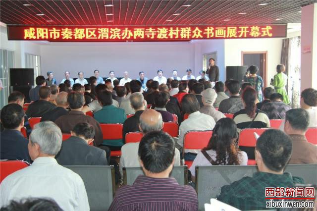 展出现场,渭滨街道办两寺渡党总支书记冯建平告诉记者:为了适应新时期农村群众文化生活的需要,2007年8月在村委党总支持下,成立了“两寺渡村群众书画协会”。协会现有陕西省书法协会会员30多人,其中中国老年书画学会会员2人,中国刀画家协会会员2人,咸阳市老年书画诗词学会会员5人。2009年咸阳市书法家协会命名两寺渡村为咸阳市首个“书法村”称号。多年来,村书画家协会以活跃农村群众文化生活,使书画艺术服务于广大群众为宗旨,坚持每年春节为全村四个自然村村民书写春联万余幅。坚持每年利用本村传统农历十月初一古会举办书画展。并举办过多次专题书画展,如“庆祝建国60周年书画展”、“庆祝建党90周年书画展”、“迎接北京奥运会书画展”等。其中多位会员书法作品参加了全国、省、市、区各类书画展,并多次获奖,多位同志书法作品曾被“书法报”、“羲之书画报”等报刊刊载。冯一冰、冯俊超的刀画作品被称为“陕西一绝”其作品独具一格,冯俊超创作刀画的事迹被山东“望月文学”报纸宣传推介。冯磊、冯权从小喜爱书画,受村内老一辈书画爱好者之影响。毕业于西安美术学院,其作品多次在省上参展,反响强烈。