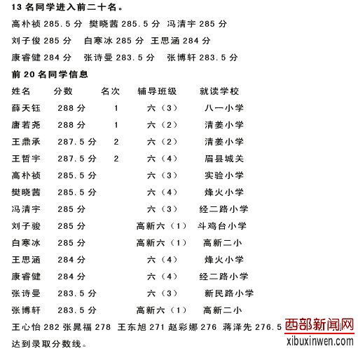 另有马逍悦、王梓玥等20名同学以优异成绩接近录取分数线,进入西工大附中《希望之星》名单。