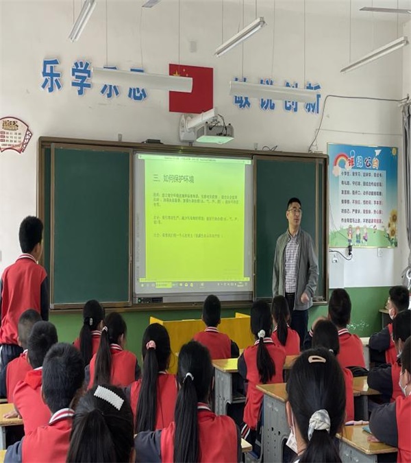当日,由市生态环境局副局长周斌强带队,市生态环境局工作人员通过视频、图片、实例等形式,从什么是环境、环境污染的主要来源和危害、如何保护环境等方面,生动形象的向同学们讲述了一堂环保课。同时,向同学们发放了治霾宣传手册、蒲城县禁止燃放烟花爆竹倡议书、垃圾分类宣传彩页、环保布袋、环保文具盒等宣传用品。呼吁中小学生从点滴做起,从身边的小事做起,做生态环保的宣传者和践行者。
