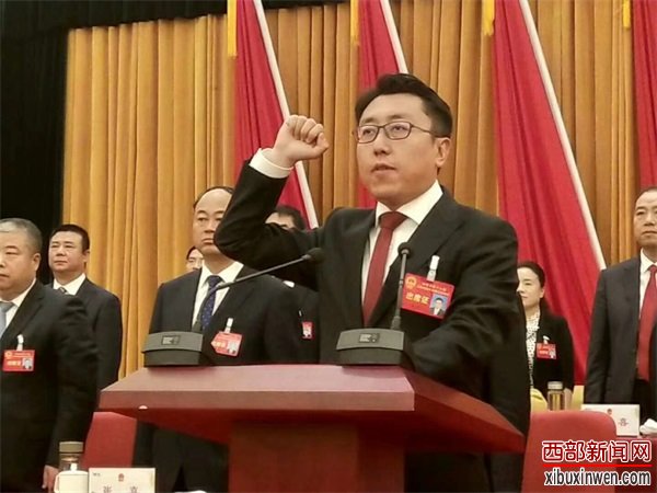 新当选的市人民政府市长杜鹏面对宪法庄严宣誓