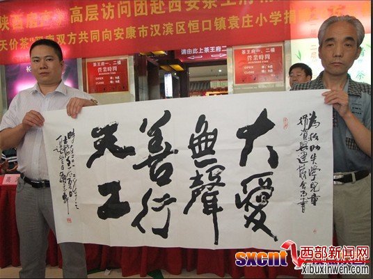 就在今日在茶王府举行的《陕西房产》高层访问团赴西安茶王府品鉴活动暨“天价茶”买卖双方共同向安康市汉滨区恒口镇袁庄小学捐赠20万元善款仪式上,买卖双方在《陕西房产》高层访问团近百名观礼嘉宾的现场见证和监督下,把这笔善款捐给了陕南山区的孩子们。