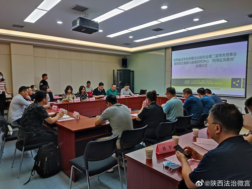 5月27日上午,陕西省法学会传媒法治研究会第二届常务理事会暨陕西云智库大数据研究中心“舆情监测基地”挂牌仪式在我校北校区二号教学楼会议室举行。西北政法大学新闻传播学院院长、陕西省法学会传媒法治研究会会长孙江,陕西省法学会传媒法治研究会秘书长、陕西知库云法学研究中心主任王荐举出席会议,会议由院长助理候旋主持。