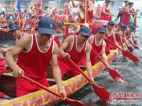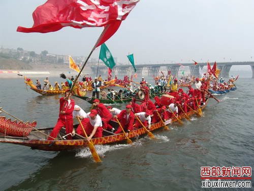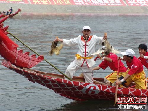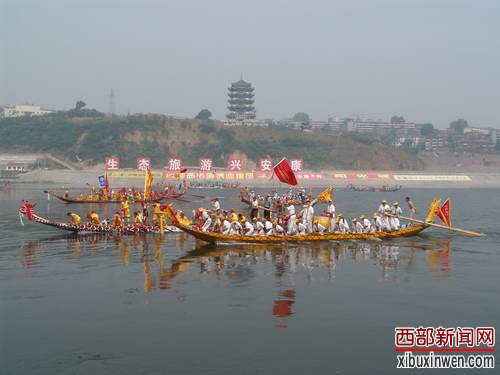 流传于安康民间的杂技“翻天印”,今年再次登上舞台。随着,三声响鞭,瑞狮出场,彩旗翻飞,步步登高。4头瑞狮从四方涌出,向八仙桌搭建成的3层高台攀爬,争抢“翻印”的彩头,引得现场观众喝彩不断。随后,来自安康市10县区及相关企业及镇办组成的24只龙舟队参与赛龙舟和抢鸭子摸鲤鱼及汉江横渡等比赛和表演更是把开幕式活动推向高潮。