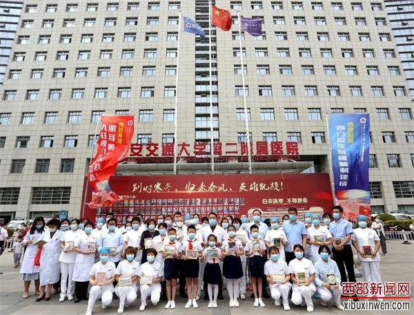 昨日是儿童节,“心长城”向抗疫天使赠送最美春天照仪式在西安交通大学第二附属医院门诊楼前广场举行,活动方将“心长城”活动中最美的145幅春天照纪念品送给了援助湖北医疗队西安交通大学第二附属医院145位抗疫天使。