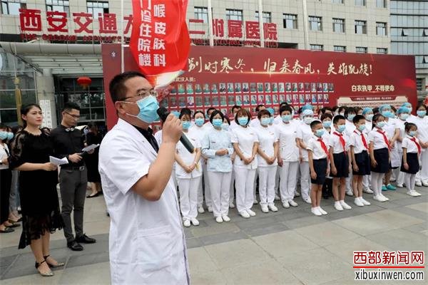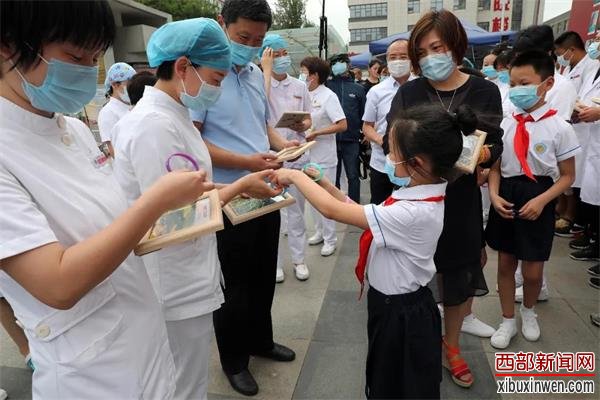 由省委网信办、团省委、省教育厅、三秦都市报、阳光报社、陕西广播电视台都市快报主办;阳光网、少年家国信公众号承办,西安市浐灞第十七小学等全省300余所中小学协办的感恩抗疫天使活动——“把最美的春天送给抗疫天使——你一寸,我一寸,寸心连成万里城”网络活动,于昨日在西安交通大学第二附属医院举行线下活动,活动主办方、承办方、协办方、学生代表向陕西援助湖北医疗队交通大学第二附属医院的145位抗疫天使,送去了孩子们拍摄的制作成纪念品的“心长城”春天照。