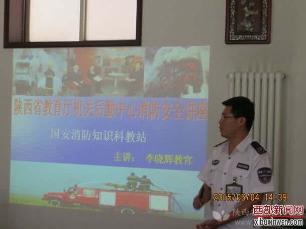 西部新闻网讯(记者杨阳)2015年6月4日下午,陕西省教育厅北院举办了消防安全演练活动。厅机关后勤中心邀请西安国安消防知识科教站的专家,为厅北院广大干部、职工作消防安全知识讲座,并实地进行消防演练。