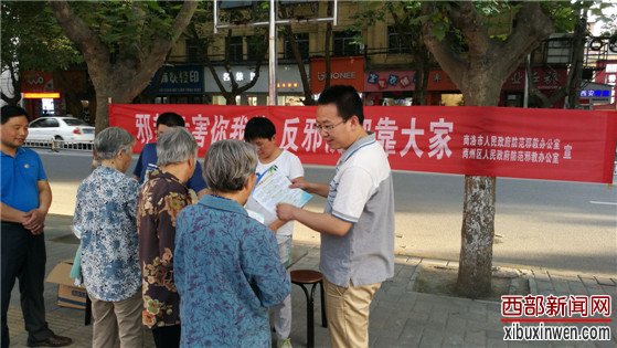 6月5日下午6点半,在群众晚间消夏纳凉的集中时间,商洛市防范邪教办公室、商州区防范邪教办公室联合在人员密集的北新街中段电信大楼前、商洛市中心广场开展反邪教警示教育及新媒体推广宣传活动。