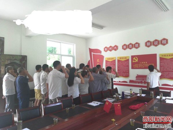 “……为共产主义奋斗终身,随时准备为党和人民牺牲一切,永不叛党。”会议室里响彻着洪亮、雄壮朗读入党誓词声。驻村第一书记带领全体党员重温入党誓词,老党员更是激动不已。通过重温入党誓词,让党员不忘初心、牢记使命,为全村村民脱贫奔小康过上富裕美好新生活奉献自己一切,发挥示范带头作用。