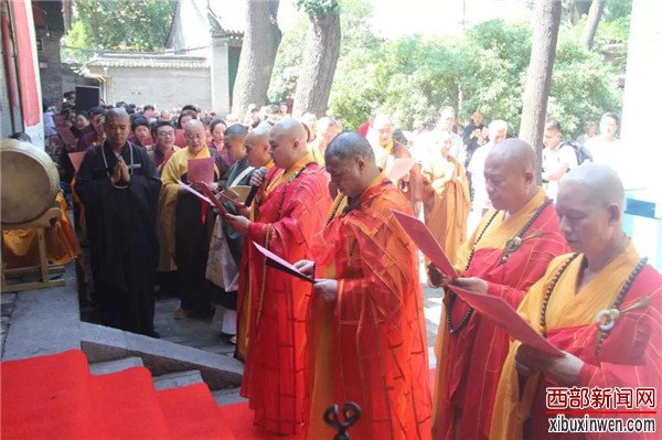 西部新闻网讯 (记者张栢溪)2018年6月28日,“密法复兴 宝幢再显”捐赠仪式在密宗祖庭西安大兴善寺隆重举行。中国佛教协会副会长、陕西省佛教协会会长、西安大慈恩寺方丈增勤和尚;陕西省佛教协会副会长、户县草堂寺方丈谛性和尚;陕西省佛教协会副会长、西安大兴善寺方丈宽旭和尚;陕西省佛教协会常务理事、西安卧龙寺方丈常礼和尚;陕西省佛教协会常务理事、扶风大明寺住持如孝法师;长安石佛古寺住持演德法师;长安终南山紫竹林住持宽印法师等诸山长老、陕西省佛教协会秘书长刘进业及十方善信五百余人参加了捐赠仪式。