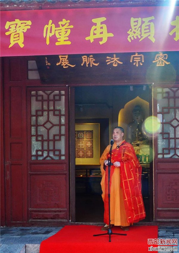 大兴善寺方丈宽旭和尚首先代表大兴善寺向所有善心居士捐赠珍贵宝幢的善缘义举表示敬意和感谢,宽旭和尚说,宝幢的回归,源于密法复兴强大的感召力,寺院将以此次捐赠仪式为契机,在充分利用现有历史文化资源的同时,深入研究整理密宗的各种典籍仪轨,以继承历史,弘扬密法,继续发掘密宗宗派及祖庭文化的宝贵资源,将密宗文化发扬光大,更好地服务于大众。