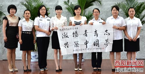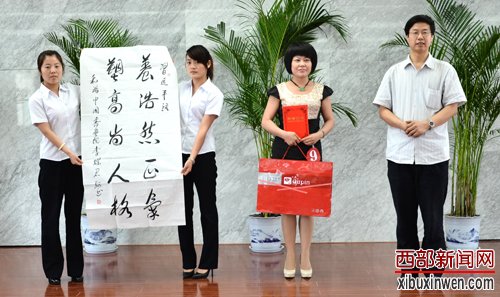 合阳县委机关党总支书记赵学斌(左二)、合阳县委宣传部副部长鲁建春(右二)