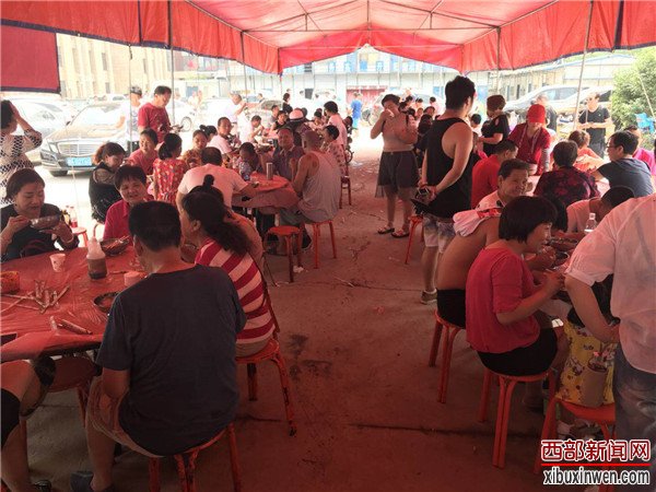 安置楼现场,广场上一溜排开的五口大锅,翻滚的锅里飞出缕缕扑鼻的香味;蓝色帐篷下,上千村民你来我往,或围桌而坐、或圪蹴、或站立,尽情享受着香喷喷的臊子面。吃饱喝足了,村民走向分房区,挑选着自己满意的房屋……。