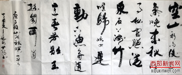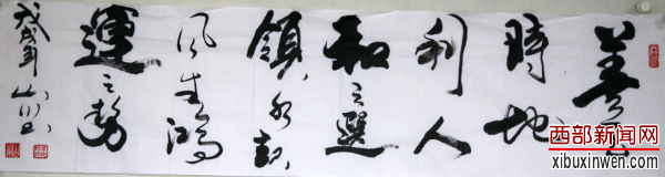 西部新闻网讯(记者 张丽)中国的书法艺术界,有这么一位传奇的人物,他做过工、当过兵,从过政,无论环境如何变化,但对书法艺术的追求从来没有停歇;他坚持临摹古帖,熔古铸今、自成一体,其书作遒劲潇洒、结体灵秀、笔意奔放,气势连贯、骨力内含,表现出一种中和之美,实现了雅俗共赏;在笔墨之间他经历了40多年风雨历程,见证了中国近当代书法艺术的发展和成熟。他就是当代书法家冯世阳先生.