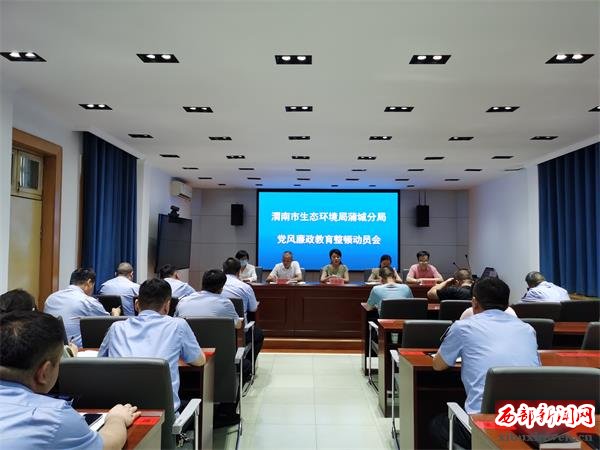 7月6日晚,蒲城分局召开以“学党章、知荣辱、严纪律、促廉洁、树形象”为主题的党风廉政教育整顿活动动员会暨第一期夜校学习会,全体干部职工参加会议。