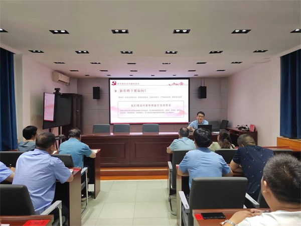 为了庆祝中国共产党成立101周年,扎实推进廉政教育,7月1日上午,渭南市生态环境局蒲城分局党总支书记、局长张江荣同志为全体党员干部上了一堂廉政教育党课,让大家在思想上受到一次警示、惊醒和教育,为进一步筑牢思想防线,自觉增强免疫力,深化反腐倡廉建设。