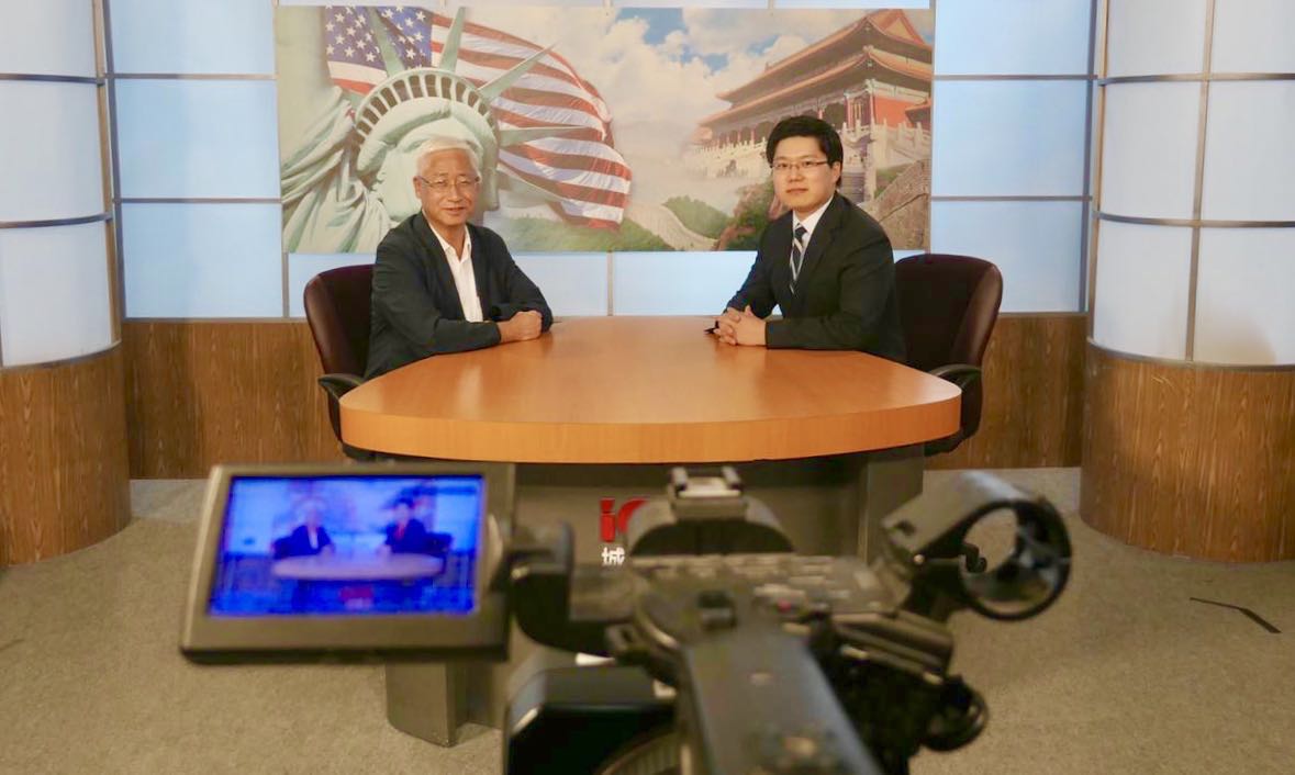 接受洛杉矶城市卫视的访问。