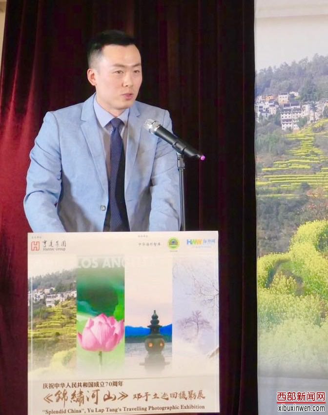 7月13日,洛杉矶中华艺术宮展馆内热闹非凡,由亨达集团、中华海外智库和美国中华艺术宮联合举办庆祝中华人民共和国成立70周年”锦繍河山”邓予立巡迴攝影展,首站洛杉矶中华艺术宮举行开幕剪䌽仪式。中国驻洛杉矶总领馆王阶宜付领事和逾百位侨领朋友出席。
